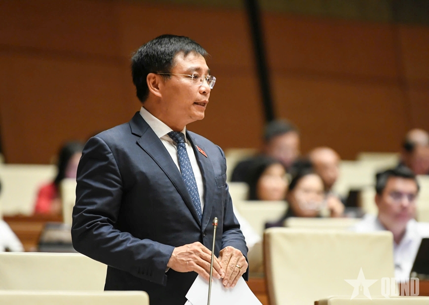 | Phó thủ tướng Nguyễn Văn Thắng phát biểu trước Quốc hội. Ảnh: TRỌNG HẢI |