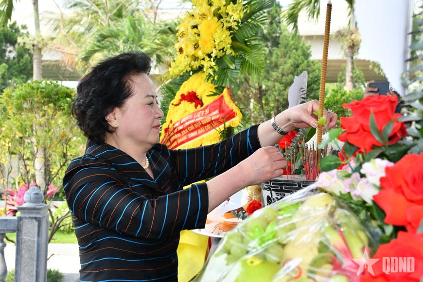 Phó thủ tướng Phạm Thị Thanh Trà dâng hoa, dâng hương tri ân các Anh hùng liệt sĩ.