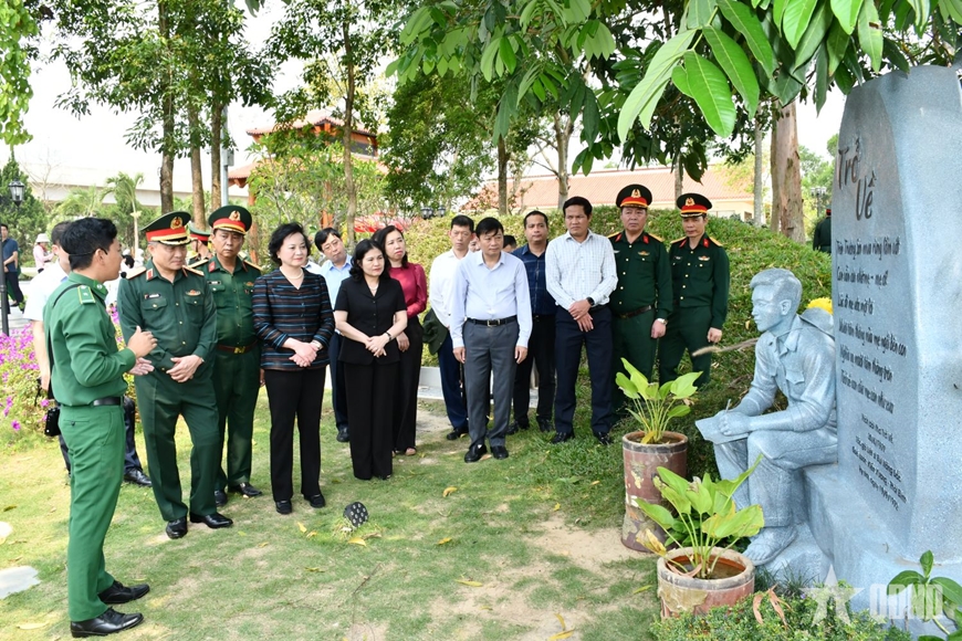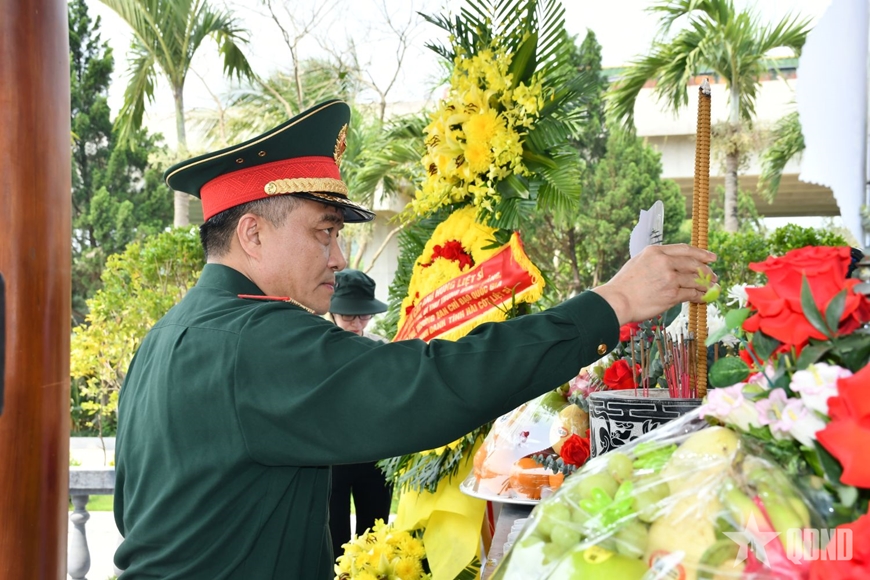 | Đoàn công tác Ban Chỉ đạo quốc gia về tìm kiếm, quy tập và xác định danh tính hài cốt liệt sĩ dành phút mặc niệm tưởng nhớ, tri ân các Anh hùng liệt sĩ. |