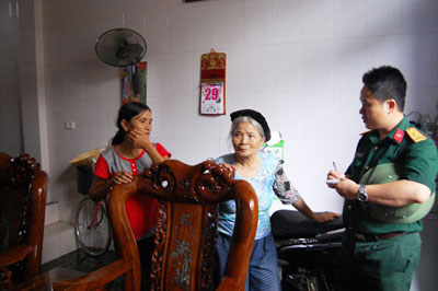 Đầu giờ chiều ngày 30-7, chúng tôi có mặt tại huyện Hậu Lộc- một trong những huyện ven biển có nguy cơ bão số 3 đổ bộ trực tiếp vào địa bàn. Đến Ban CHQS huyện chỉ có một vài cán bộ, nhân viên. Hỏi ra mới biết, quân số của Ban CHQS huyện trực 100%, nhưng được điều động xuống địa bàn các xã trọng điểm để giúp dân phòng chống bão.