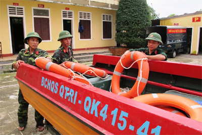 | Ban CHQS huyện Đắc Rông, tỉnh Quảng Trị chuẩn bị phương tiện cơ động cứu dân. |
