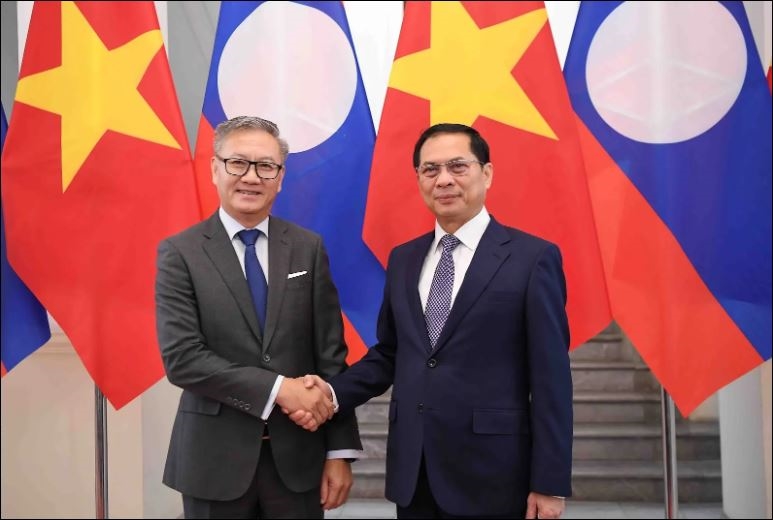 Phó thủ tướng Chính phủ, Bộ trưởng Bộ Ngoại giao Bùi Thanh Sơn và Bộ trưởng Bộ Ngoại giao Lào Thongsavanh Phomvihane. Ảnh: BNG