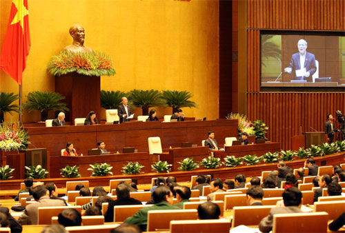 | Thủ tướng Nguyễn Tấn Dũng trả lời chất vấn của đại biểu Quốc hội. Ảnh: Phạm Kiên - TTXVN. |