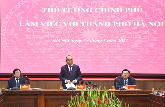 Thủ tướng đề nghị, thời gian tới, Hà Nội cần tập trung và huy động của cả hệ thống chính trị và nhân dân để cụ thể hóa Nghị quyết Đại hội XIII của Đảng và Nghị quyết Đại hội Đảng bộ thành phố lần thứ XVII. Đi đầu thực hiện Nghị quyết 01, 02 năm 2021 của Chính phủ. Chuẩn bị tốt các công tác tổ chức bầu cử Đại biểu Quốc hội khóa XV và bầu cử Đại biểu Hội đồng nhân dân các cấp nhiệm kỳ 2021-2026. Hà Nội cần tiên phong thực hiện “mục tiêu kép”, vừa phòng, chống dịch vừa phục hồi, phát triển kinh tế, bảo đảm an sinh xã hội và đời sống nhân dân. Đổi mới mạnh mẽ mô hình tăng trưởng, cơ cấu lại nền kinh tế dựa trên ứng dụng khoa học, công nghệ và đổi mới sáng tạo gắn với thực hiện đồng bộ 3 đột phá chiến lược.