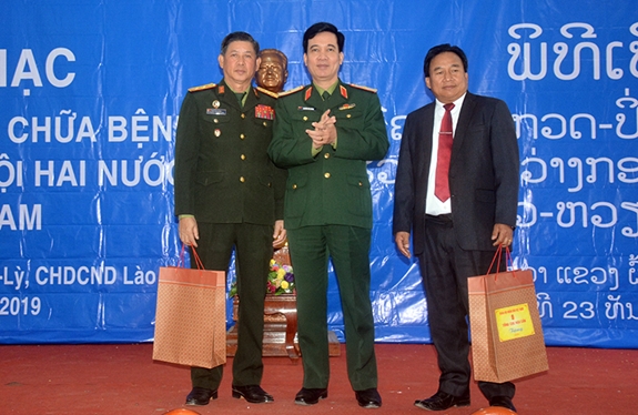 Thiếu tướng Nguyễn Văn Cường, Phó chính ủy Tổng cục Hậu cần (TCHC); Trung tướng Vongkham Phonmakon, Chủ nhiệm TCHC QĐND Lào; ông Thoongxy Saosulyphon, Phó chủ tịch UBND tỉnh Phongsaly đồng chủ trì khai mạc.
