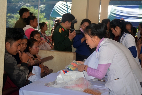 Bác sĩ khám bệnh cho đồng bào địa phương. |