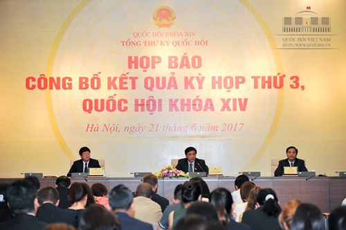 Báo cáo về kết quả Kỳ họp thứ ba, Quốc hội khóa XIV, ông Lê Bộ Lĩnh, Phó tổng thư ký Quốc hội, Phó chủ nhiệm Văn phòng Quốc hội khẳng định: Sau một tháng làm việc khẩn trương, nghiêm túc; với tinh thần đoàn kết, dân chủ, trí tuệ và trách nhiệm cao; với sự tham gia tích cực, đóng góp nhiều ý kiến tâm huyết của các vị đại biểu Quốc hội; với tinh thần làm việc tận tụy, trách nhiệm của các cơ quan của Quốc hội và sự chuẩn bị công phu của Chính phủ, các cơ quan liên quan; với sự quan tâm, theo dõi, giám sát và chia sẻ của đông đảo cử tri, nhân dân cả nước; sự tham gia, đưa tin kịp thời, đầy đủ, chính xác của các cơ quan thông tấn báo chí trong và ngoài nước, kỳ họp thứ 3, Quốc hội khóa XIV đã kết thúc tốt đẹp.