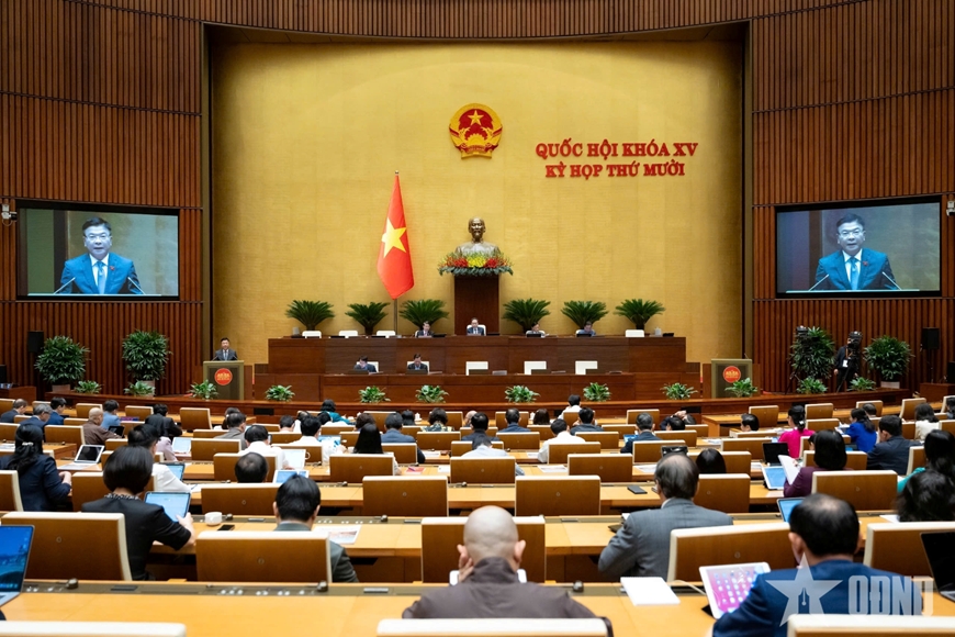 Trước khi biểu quyết, Quốc hội nghe Phó thủ tướng Chính phủ Lê Thành Long trình bày báo cáo giải trình, tiếp thu, chỉnh lý dự thảo Nghị quyết về dự toán ngân sách nhà nước năm 2026.
