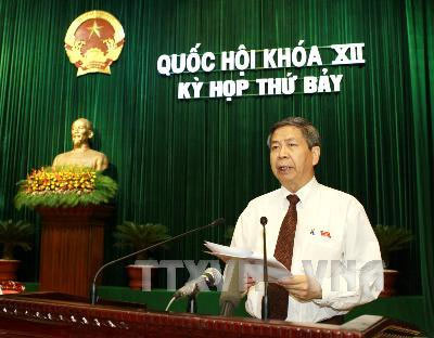 | Chủ nhiệm Uỷ ban Khoa học, công nghệ và môi trường của Quốc hội Đặng Vũ Minh trình bày báo cáo giải trình, tiếp thu, chỉnh lý dự thảo Luật an toàn thực phẩm. Ảnh : Doãn Tấn - TTXVN |
