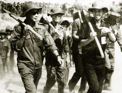| Đồng chí Võ Văn Kiệt cùng lao động với TNXP trên Công trường thủ công Tam Tân (Củ Chi) năm 1976. |