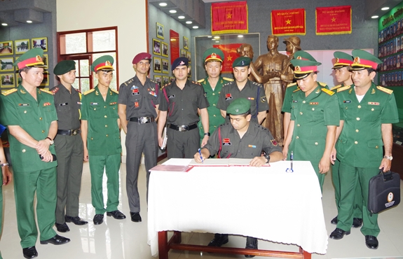 Đại diện sĩ quan trẻ Ấn Độ ghi lưu niệm vào sổ truyền thống Sư đoàn 9. |