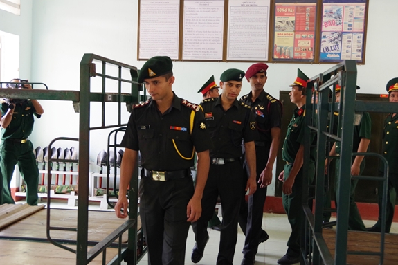 Đoàn sĩ quan trẻ Ấn Độ tham quan nhà nghỉ của chiến sĩ Sư đoàn 9. |