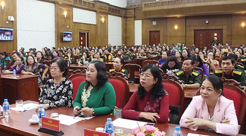 Đọc diễn văn ôn lại truyền thống, Đại tá Nguyễn Công Sơn, Phó chủ nhiệm Chính trị Quân khu 7, cho biết, trải qua hàng nghìn năm dựng nước, giữ nước, Phụ nữ Việt Nam đã đóng góp quan trọng trên các lĩnh vực chiến đấu chống giặc ngoại xâm, thiên tai, lao động sản xuất, phát triển văn hóa…xây dựng nên truyền thống Phụ nữ Việt Nam “Anh hùng, bất khuất, trung hậu, đảm đang”. 25 năm qua, Phụ nữ Quân đội luôn phát huy tốt phẩm chất Bộ đội Cụ Hồ, nêu cao tinh thần tự lực tự cường, hoàn thành tốt nhiệm vụ chính trị được giao, góp phần vào thắng lợi nhiệm vụ chính trị của quân đội.