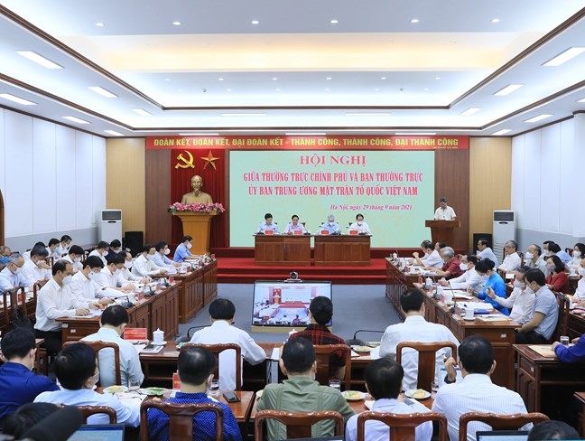 Thay mặt Chính phủ, Thủ tướng Phạm Minh Chính đánh giá rất cao và cảm ơn sự ủng hộ, phối hợp chặt chẽ, đoàn kết, đồng tâm hiệp lực của UBTƯ MTTQ Việt Nam với Chính phủ thời gian qua, đặc biệt là trong cuộc chiến chống dịch Covid-19 suốt gần 2 năm qua.