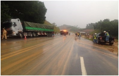 Vào lúc 5 giờ 15 phút sáng 23-9, tại Km 130+700 (đường cao tốc Nội Bài - Lào Cai) đoạn qua thôn 11, xã Quy Mông, huyện Trấn Yên, tỉnh Yên Bái đã xảy ra vụ tai nạn giao thông nghiêm trọng làm 2 người chết và 7 người bị thương.