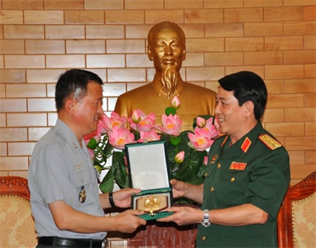 Thượng tướng Lương Cường tặng quà kỷ niệm Chuẩn tướng Kwon Young Kyu.