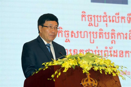 Phát biểu tại Hội nghị, Phó Thủ tướng, Bộ trưởng Bộ Ngoại giao Phạm Bình Minh và Phó Thủ tướng, Bộ trưởng Nội vụ Cam-pu-chia Xo Khêng đã điểm lại những mốc phát triển trong quan hệ hai nước kể từ Hội nghị lần thứ 7 (tháng 3-2012), bày tỏ vui mừng trước việc quan hệ láng giềng hữu nghị truyền thống, hợp tác toàn diện giữa Việt Nam và Cam-pu-chia tiếp tục được củng cố và phát triển, góp phần gìn giữ khu vực biên giới hòa bình, ổn định, hợp tác và phát triển, vì lợi ích của nhân dân hai nước. Hai bên thường xuyên trao đổi đoàn cấp cao và các cấp, duy trì các cơ chế hợp tác giữa hai nước. Gần đây nhất, Kỳ họp lần thứ 14 Ủy ban Hỗn hợp Việt Nam-Cam-pu-chia về hợp tác Kinh tế, Văn hóa, Khoa học kỹ thuật tại TP Hồ Chí Minh (18/19-10-2015) đạt kết quả tốt đẹp.