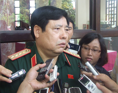 Đại tướng Phùng Quang Thanh, Bộ trưởng Bộ Quốc phòng trả lời phỏng vấn báo chí. Ảnh: Xuân Dũng