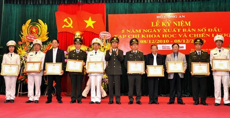 Thứ trưởng Đặng Văn Hiếu trao Bằng khen của Bộ trưởng Bộ Công an tặng tập thể cán bộ, chiến sĩ, cộng tác viên của Tạp chí Khoa học và Chiến lược.
