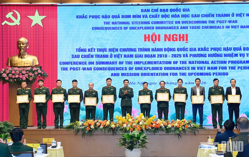 Nhân dịp này, Thủ tướng Phạm Minh Chính và Đại tướng Phan Văn Giang đã trao bằng khen tặng các tập thể, cá nhân có thành tích xuất sắc trong công tác khắc phục hậu quả bom mìn, vật nổ sau chiến tranh ở Việt Nam giai đoạn 2010-2025.