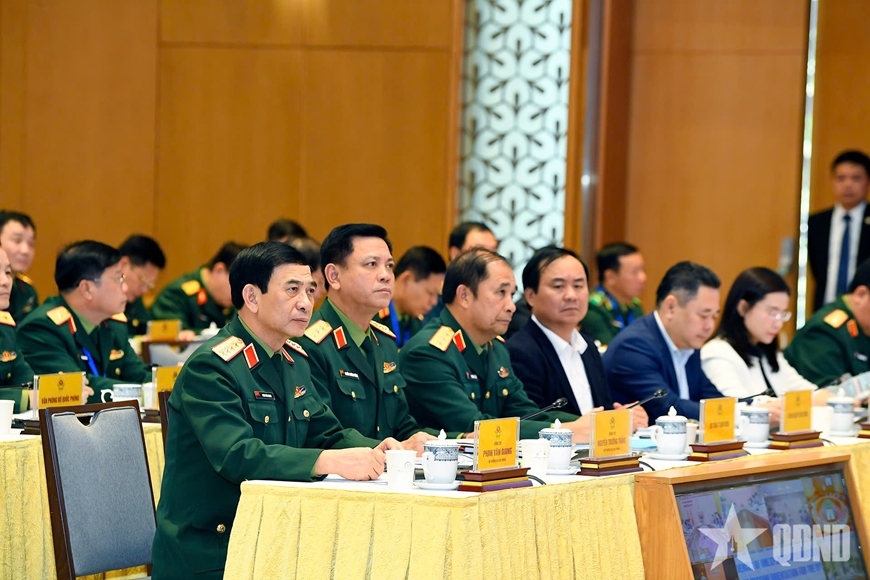 Đại tướng Phan Văn Giang, Ủy viên Bộ Chính trị, Phó bí thư Quân ủy Trung ương, Bộ trưởng Bộ Quốc phòng tham dự hội nghị.