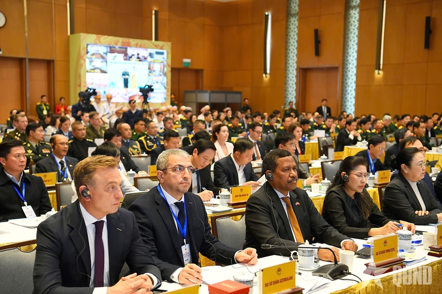 | Hội nghị có sự tham dự của các Đại sứ, Tùy viên Quốc phòng các nước và đại biểu các tổ chức quốc tế. Ảnh: TUẤN HUY |