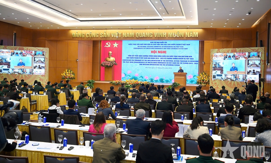 Thủ tướng Phạm Minh Chính yêu cầu Bộ Quốc phòng chủ trì, phối hợp với các bộ, ngành, địa phương liên quan khẩn trương hoàn thiện, đề xuất Chương trình hành động giai đoạn 2026-2045 trình Thủ tướng; khẩn trương thực hiện Đề án nâng cao năng lực rà phá bom mìn vật nổ đến năm 2030 và những năm tiếp theo, tăng cường nghiên cứu, ứng dụng khoa học công nghệ vào công tác khắc phục hậu quả bom mìn; triển khai vận động, tổ chức tiếp nhận các nguồn tài trợ, bảo đảm mục tiêu, tiến độ thực hiện Chương trình giai đoạn 2026-2045.