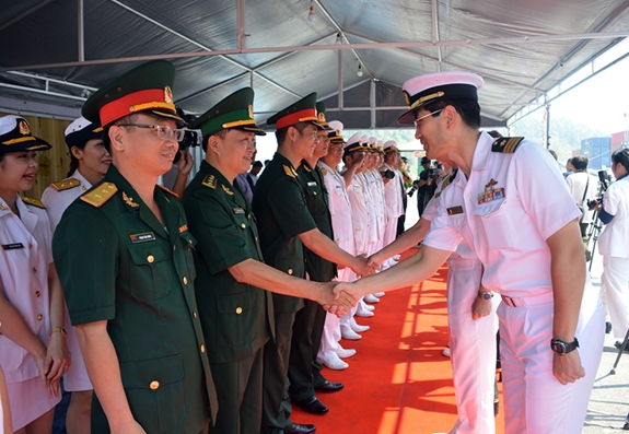 Lễ đón tàu tại cảng Tiên Sa có sự tham gia của đại diện Bộ Tư lệnh Vùng 3 Hải quân, Cục Đối ngoại (Bộ Quốc phòng), Văn phòng BTL Quân khu 5, Phòng Đối ngoại (BTL Hải quân), Bộ chỉ huy BĐBP TP Đà Nẵng, Bộ CHQS TP Đà Nẵng và Sở Ngoại vụ TP Đà Nẵng. Về phía Nhật Bản có ông Kunio Umeda, Đại sứ đặc mệnh toàn quyền Nhật Bản tại Việt Nam; Đại tá Kaitaro Shido, Tùy viên Quốc phòng Nhật Bản tại Việt Nam.
