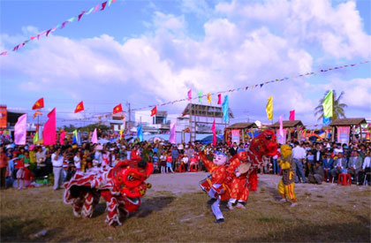 | Tiết mục múa lân đặc sắc chào đón năm mới tại Lễ hội chợ Gò. |