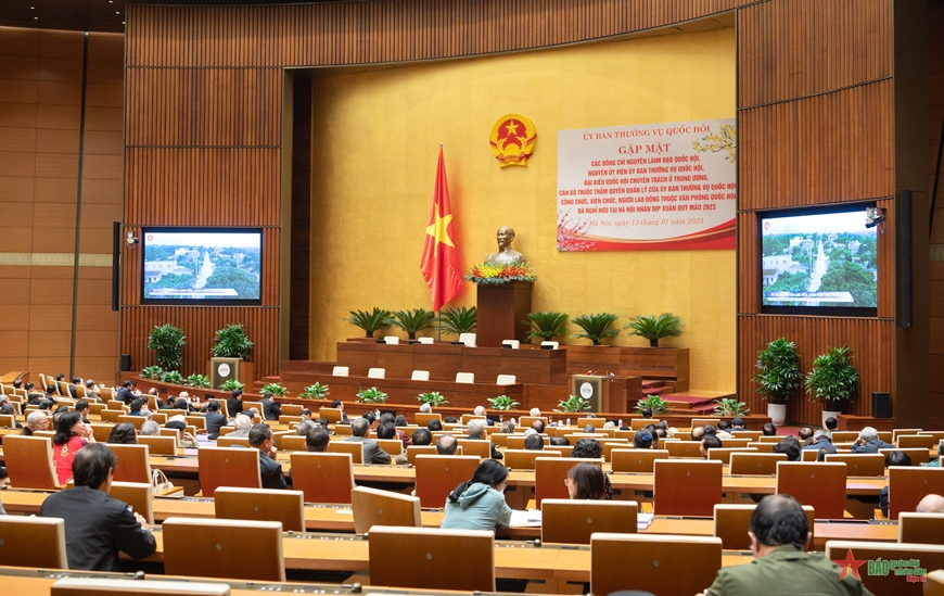 Chủ tịch Quốc hội cho biết, năm 2023 là năm giữa nhiệm kỳ, năm bản lề có ý nghĩa rất quan trọng trong việc thực hiện Nghị quyết Đại hội lần thứ XIII của Đảng và kế hoạch 5 năm 2021-2025. Quốc hội Việt Nam với 77 năm hoạt động sẽ tiếp tục duy trì và phát triển, bám sát chương trình hành động toàn khóa và đặc biệt là Nghị quyết số 27-NQ/TW ngày 9-11-2022 (tại Hội nghị Trung ương 6) về tiếp tục xây dựng và hoàn thiện Nhà nước pháp quyền xã hội chủ nghĩa Việt Nam trong giai đoạn mới.