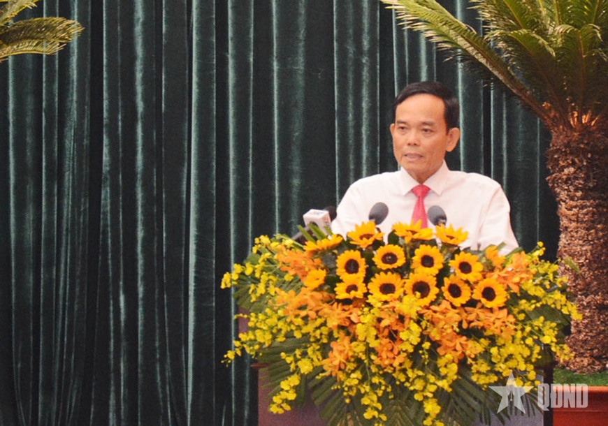 Đồng chí Bí thư Thành ủy TP Hồ Chí Minh nhấn mạnh những điểm nổi bật trong năm 2025, đặc biệt là kết quả bước đầu trong vận hành mô hình chính quyền địa phương 2 cấp. Với quy mô lớn hơn, không gian phát triển rộng hơn, tiềm năng mạnh hơn, TP Hồ Chí Minh tiếp tục gánh vác nhiệm vụ nặng nề, giữ vai trò đầu tàu kinh tế, trung tâm khoa học - công nghệ và đổi mới sáng tạo của cả nước. Mục tiêu xuyên suốt trong công tác lãnh đạo là làm cho cuộc sống của từng người dân, từng gia đình ngày càng có chất lượng tốt hơn.