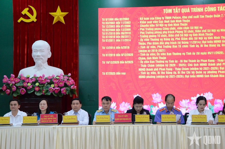 Tại buổi tiếp xúc, các ứng cử viên lần lượt trình bày chương trình hành động nếu được cử tri tín nhiệm bầu làm đại biểu Quốc hội khóa XVI. Cử tri quan tâm nhiều nội dung liên quan đến phát triển kinh tế - xã hội địa phương, chiến lược kinh tế biển, bảo đảm quốc phòng - an ninh, cũng như vai trò của lực lượng vũ trang trong sự nghiệp xây dựng và bảo vệ Tổ quốc; nâng cao đời sống vật chất, tinh thần, việc làm, bảo vệ sức khỏe cho người dân, quan tâm đến vùng sâu vùng xa, đồng bào dân tộc thiểu số…