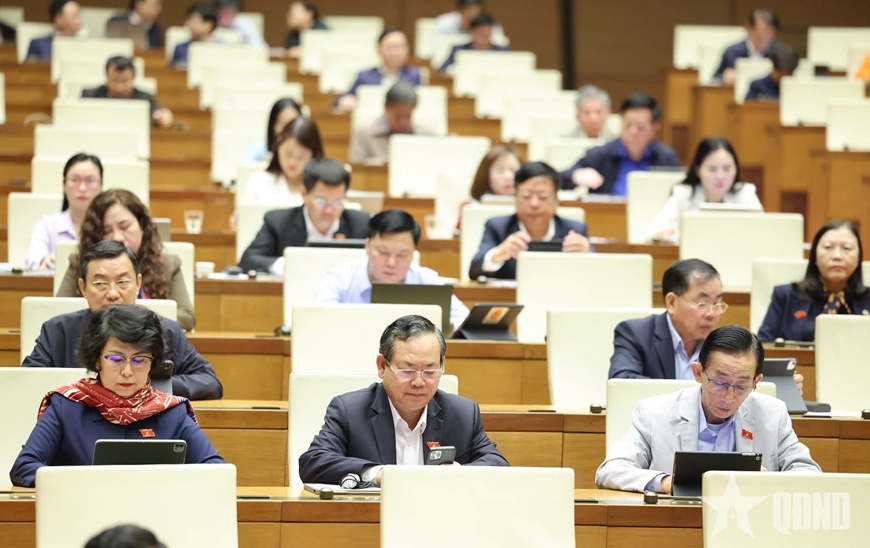 Sau đó, Quốc hội thảo luận về các nội dung: (1) Dự thảo Nghị quyết của Quốc hội sửa đổi, bổ sung một số điều Nghị quyết số 98/2023/QH15 về thí điểm một số cơ chế, chính sách đặc thù phát triển Thành phố Hồ Chí Minh; (2) Dự thảo Nghị quyết của Quốc hội sửa đổi, bổ sung một số điều Nghị quyết số 136/2024/QH15 về tổ chức chính quyền đô thị và thí điểm một số cơ chế, chính sách đặc thù phát triển thành phố Đà Nẵng; (3) Việc bổ sung ngân sách Nhà nước đợt 2 (nguồn vốn không hoàn lại nước ngoài) năm 2025; (4) Việc sửa đổi, bổ sung Nghị quyết số 170/2024/QH15 ngày 30-11-2024 của Quốc hội về cơ chế, chính sách đặc thù để tháo gỡ khó khăn, vướng mắc đối với các dự án, đất đai trong kết luận thanh tra, kiểm tra, bản án tại Thành phố Hồ Chí Minh, thành phố Đà Nẵng và tỉnh Khánh Hòa.