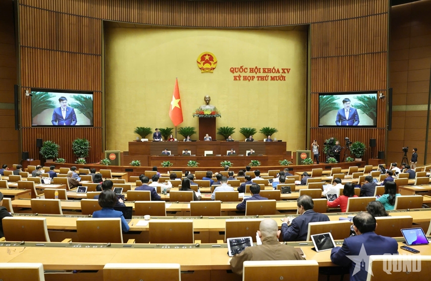 Nội dung 3: Dưới sự điều hành của Phó chủ tịch Quốc hội Nguyễn Khắc Định, Quốc hội thảo luận tại hội trường về dự án Luật Tòa án chuyên biệt tại Trung tâm Tài chính quốc tế.