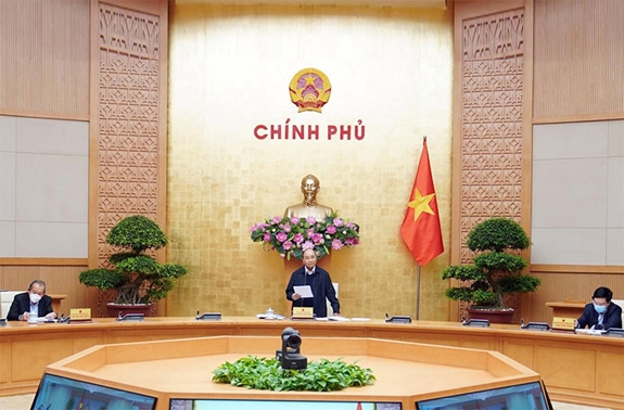 Thủ tướng Nguyễn Xuân Phúc phát biểu chỉ đạo tại cuộc họp thường trực Chính phủ bàn về hỗ trợ người dân gặp khó khăn do dịch Covid-19. Ảnh QUANG HIẾU