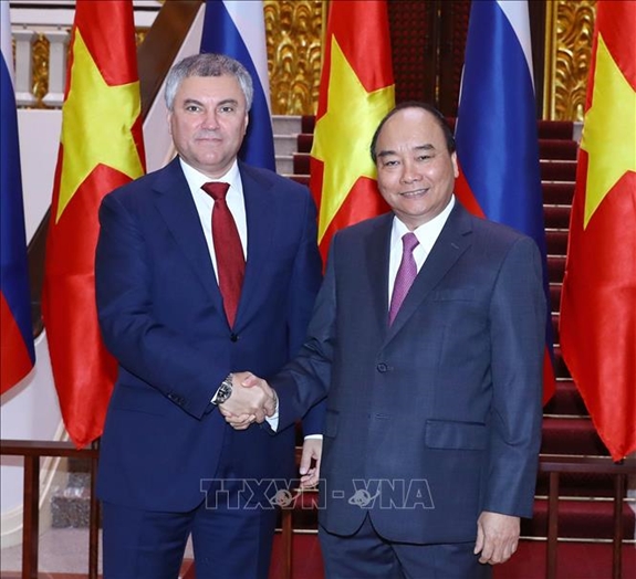 Tại buổi tiếp, Thủ tướng Nguyễn Xuân Phúc bày tỏ hài lòng nhận thấy mối quan hệ chính trị đặc biệt tin cậy giữa hai nước Việt Nam và Liên bang Nga đang tiếp tục được duy trì và củng cố thông qua trao đổi đoàn các cấp, đặc biệt là cấp cao. Thủ tướng tin tưởng chuyến thăm chính thức của Chủ tịch Duma lần này sẽ góp phần củng cố hơn nữa mối quan hệ tốt đẹp giữa hai nước. Nhân dịp năm mới, Thủ tướng Nguyễn Xuân Phúc chúc Chủ tịch Duma và đoàn năm mới an khang thịnh vượng, hạnh phúc và nhiều thành công.