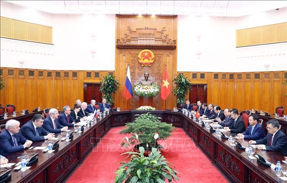 Hoan nghênh ý kiến của ông Vyacheslav Viktorovich Volodin, Thủ tướng khẳng định, Liên Xô trước đây và Nga ngày nay gắn bó, giúp đỡ, hỗ trợ nhân dân Việt Nam trong công cuộc bảo vệ và xây dựng đất nước.