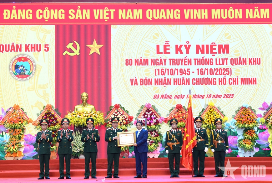 Tại lễ kỷ niệm, thay mặt lãnh đạo Đảng, Nhà nước, Thủ tướng Chính phủ Phạm Minh Chính đã trao Huân chương Hồ Chí Minh tặng LLVT Quân khu 5.