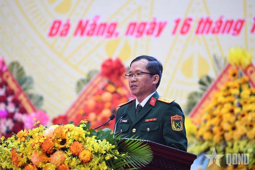 Đại tá Lương Đình Chung, Bí thư Đảng ủy, Chính ủy Quân khu 5 trình bày diễn văn kỷ niệm.