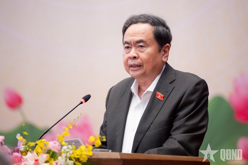 | Chủ tịch Quốc hội Trần Thanh Mẫn phát biểu tại hội nghị. Ảnh: VŨ HIẾU |