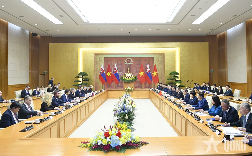 Thủ tướng khẳng định Việt Nam luôn ghi nhớ và biết ơn sự ủng hộ, giúp đỡ quý báu của Chính phủ và nhân dân Slovakia dành cho Việt Nam trong sự nghiệp đấu tranh giành độc lập, thống nhất đất nước trước đây, cũng như trong công cuộc đổi mới và phát triển kinh tế - xã hội hiện nay.