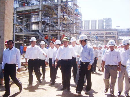 Thủ tướng Nguyễn Tấn Dũng thị sát công trường Nhà máy lọc dầu Dung Quất. Ảnh VOVnews.