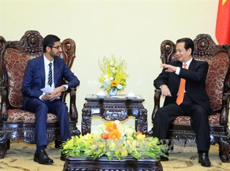 Hoan nghênh ông Sundar Pichai thăm làm việc tại Việt Nam, Thủ tướng Nguyễn Tấn Dũng đánh giá cao tên tuổi, thương hiệu toàn cầu của Google, nhất là việc đóng góp của Google vào việc phổ biến tri thức, nâng cao cơ hội tiếp cận thông tin, giáo dục cho người dân trên thế giới, góp phần cho sự phát triển của mỗi cá nhân cũng như các quốc gia.