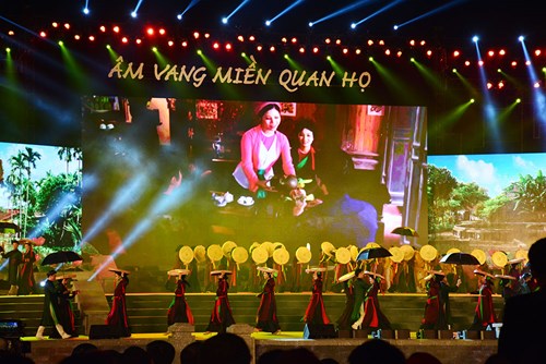 Một tiết mục nghệ thuật đặc sắc mang đậm văn hóa Kinh Bắc trong chương trình nghệ thuật "Âm vang miền Quan họ".