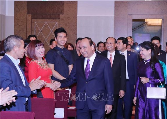 Tại buổi gặp mặt, Thủ tướng Nguyễn Xuân Phúc đã thân mặt thăm hỏi, tặng quà và bày tỏ mong muốn bà con nỗ lực phát huy cầu nối thắt chặt quan hệ hữu nghị giữa Việt Nam với quốc gia nơi sinh sống.