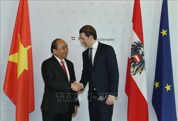 Ngay sau lễ đón chính thức, Thủ tướng Chính phủ Nguyễn Xuân Phúc đã có cuộc gặp riêng và hội đàm với Thủ tướng Áo Sebastian Kurz. Hai nhà lãnh đạo đã bày tỏ vui mừng trước sự phát triển tốt đẹp của quan hệ Việt Nam - Áo trong gần 5 thập kỷ qua kể từ khi hai nước thiết lập quan hệ ngoại giao ngày 1-12-1972. Thủ tướng Sebastian Kurz nhấn mạnh chuyến thăm chính thức Áo lần này của Thủ tướng Nguyễn Xuân Phúc là một cột mốc trong quan hệ hai nước, đánh giá cao các thành tựu phát triển, hội nhập và vai trò ngày càng cao của Việt Nam tại khu vực và trên quốc tế, mong muốn quan hệ hai nước có những bước phát triển mạnh mẽ và toàn diện hơn trong thời gian tới.
