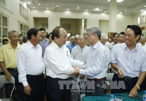 Thủ tướng Nguyễn Xuân Phúc tiếp xúc cử tri tại câu lạc bộ Bạch Đằng. Ảnh: TTXVN