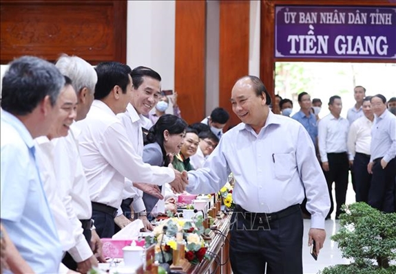 * Trước đó, sáng cùng ngày, Thủ tướng Nguyễn Xuân Phúc đã khảo sát mô hình chuyển đổi sản xuất nông nghiệp, trồng sầu riêng năng suất cao tại xã Hiệp Đức, huyện Cai Lậy, tỉnh Tiền Giang.