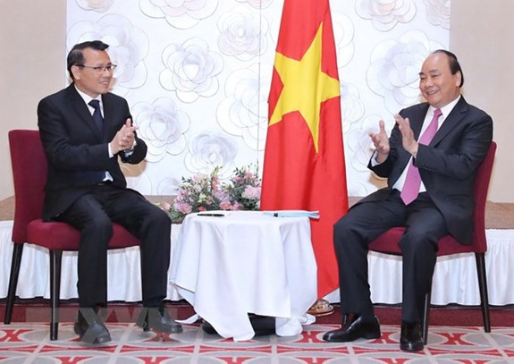 Thủ tướng Nguyễn Xuân Phúc và Chủ tịch Hội người Việt Nam tại Cộng hòa Séc Nguyễn Duy Nhiên. (Ảnh: TTXVN) |