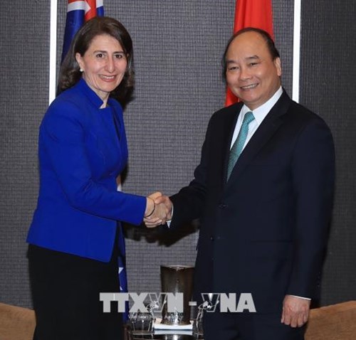 Bà Thủ hiến Gladys Berejiklian bày tỏ vui mừng và vinh dự được đón Thủ tướng và Đoàn đến thăm bang New South Wales; cho biết bà rất ấn tượng với các thành tựu phát triển của Việt Nam, nhất là về kinh tế. Bà Thủ hiến bày tỏ hài lòng và đánh giá cao hợp tác của Việt Nam với bang New South Wales nói chung và thành phố Sydney nói riêng; nhấn mạnh với việc thiết lập quan hệ Đối tác Chiến lược, hai bên sẽ có nhiều cơ hội hơn nữa để mở rộng hợp tác trên các lĩnh vực, trong đó có đào tạo, dạy nghề - là các lĩnh vực bang có thế mạnh. Bà Thủ hiến chia sẻ thêm, thành phố Sydney đang triển khai kế hoạch nâng cấp cơ sở hạ tầng trị giá 80 tỷ AUD trong 4 năm, bao gồm các hệ thống ngầm và xây dựng thêm sân bay ở phía Tây thành phố, là sự chuẩn bị để Sydney có thể đón luồng đầu tư, khách du lịch, du học sinh, cũng như những cơ hội hợp tác khác từ các quốc gia Đông Nam Á, trong đó có Việt Nam, trong những năm tới, khi quan hệ giữa Australia và các nước ASEAN được tăng cường. Bà Thủ hiến cũng hoan nghênh việc Đài Tiếng nói Việt Nam (VOV) sẽ mở Văn phòng Đại diện tại Sydney, khẳng định sẽ tạo điều kiện thuận lợi cho Văn phòng Đại diện của VOV hoạt động hiệu quả, hỗ trợ tích cực cho cộng đồng người Việt tại bang New South Wales cũng như việc tăng cường quan hệ hai nước.